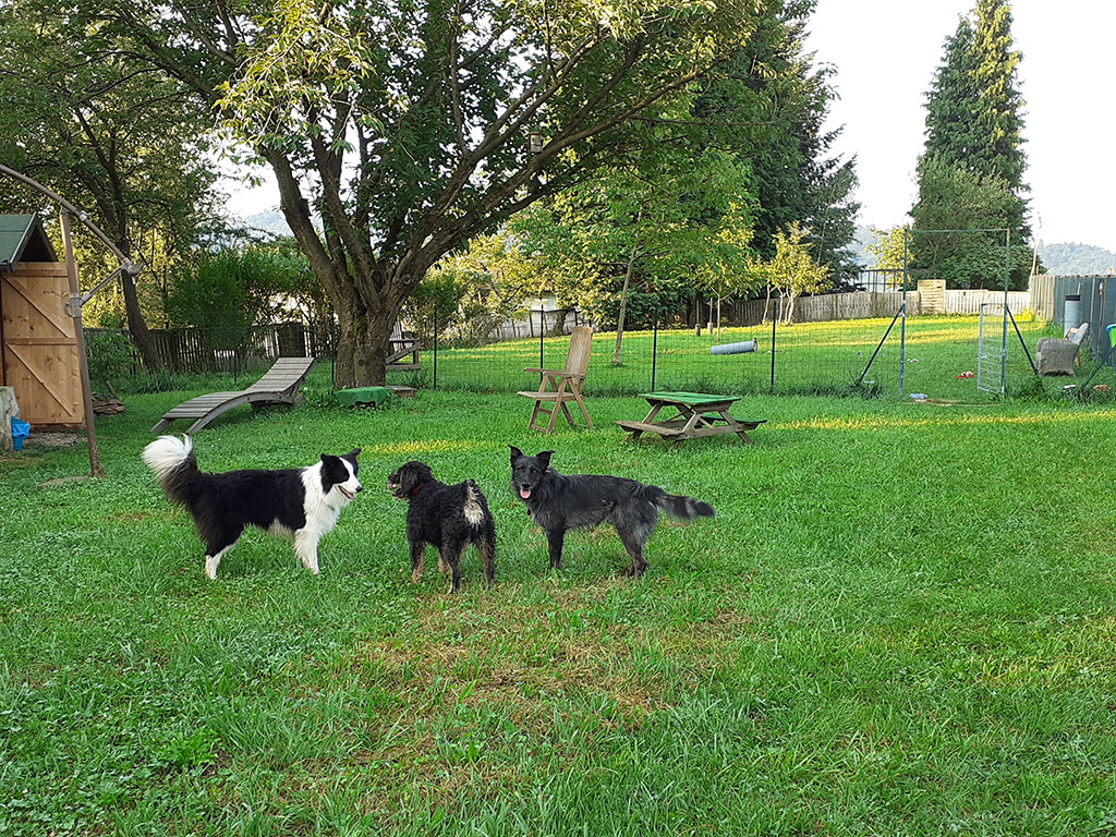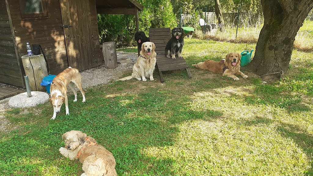 La nostra struttura si divide in un’ ampia area verde di circa 5.000 mq, completamente recintata, sicura e molto ombreggiata, circondata da campi e lontana dalle strade, e un locale al coperto in caso di brutto tempo dal quale si può comunque accedere a una zona esterna adiacente. Entrambe le aree sono divise in modo da poter creare gruppi di gioco in base alle diverse tipologie di razza, età, carattere e attitudini dei cani ospiti; non sono presenti gabbie!!